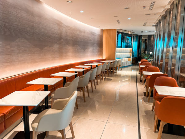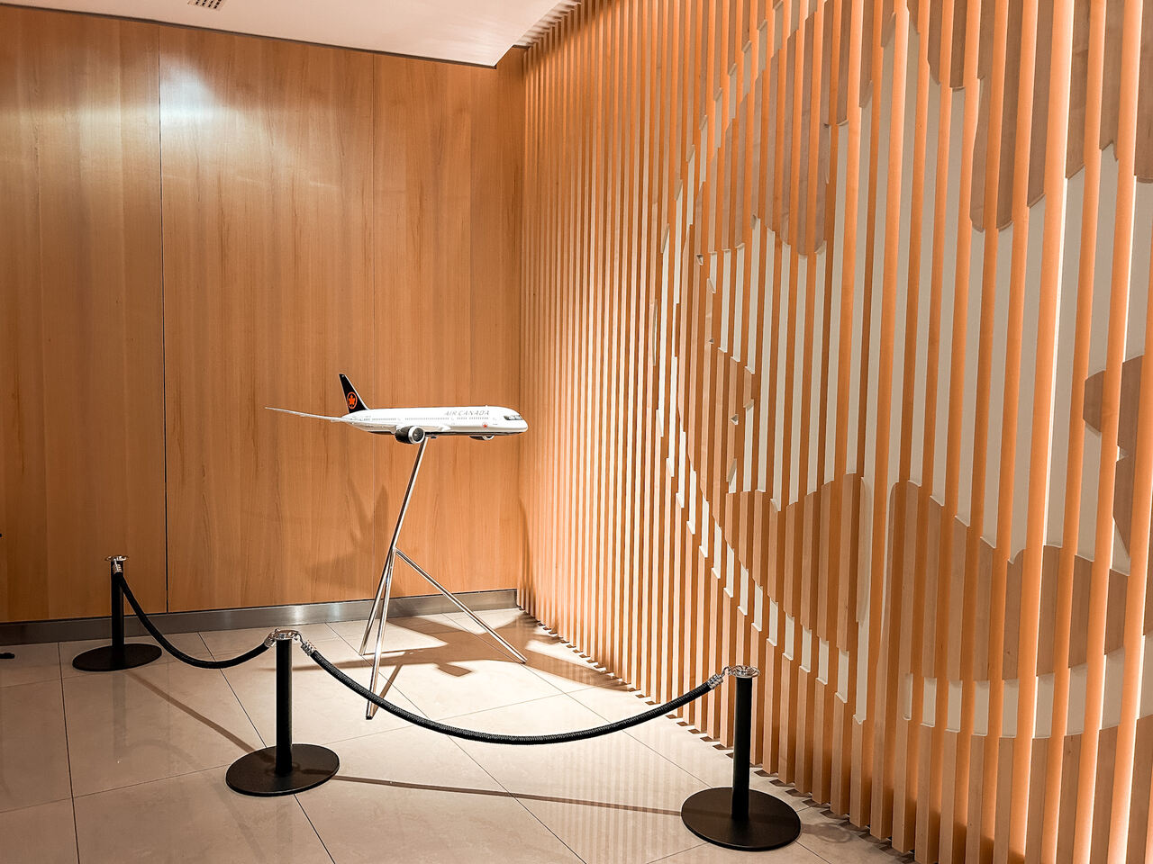 The basic layout of the lounge remains largely unchanged – and that’s a positive aspect. The reception area continues to feature the iconic maple leaf logo and a model aircraft. Guests then enter the spacious buffet and seating area as before.