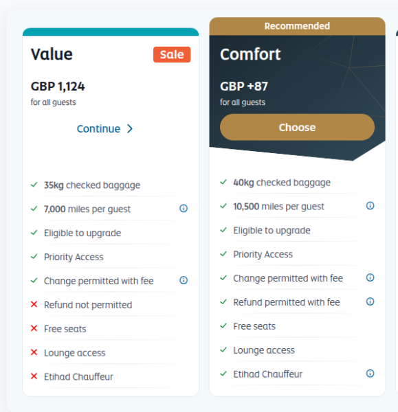 It’s important to note that the very lowest “Value” fares don’t include Lounge Access, but “Comfort” fares are generally only a little more: