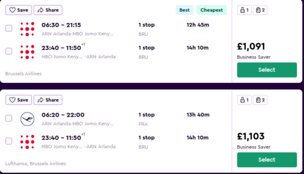 - Route: Stockholm – Nairobi (via Frankfurt or Brussels)